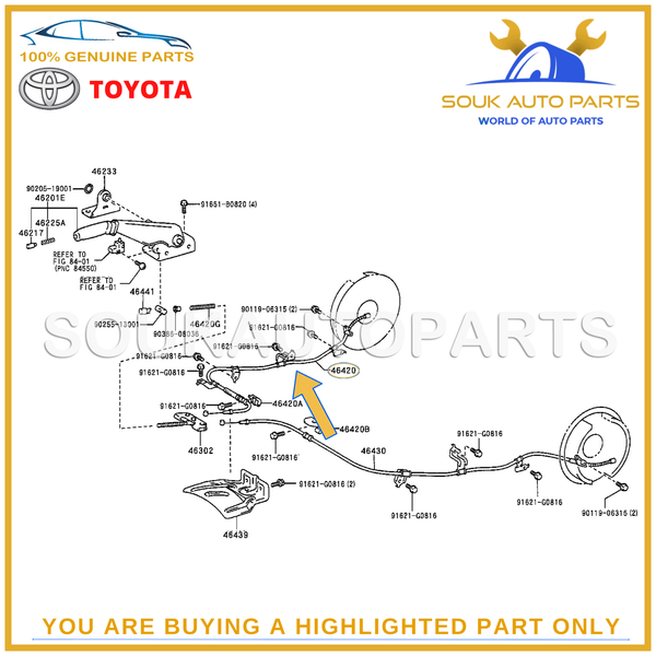 46420-60070 Genuine Toyota CABLE ASSY, PARKING BRAKE, NO.2 4642060070 OEM