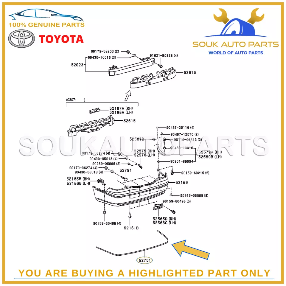 SKU: 52751-50030 TOYOTA REAR BUMPER MOULDING