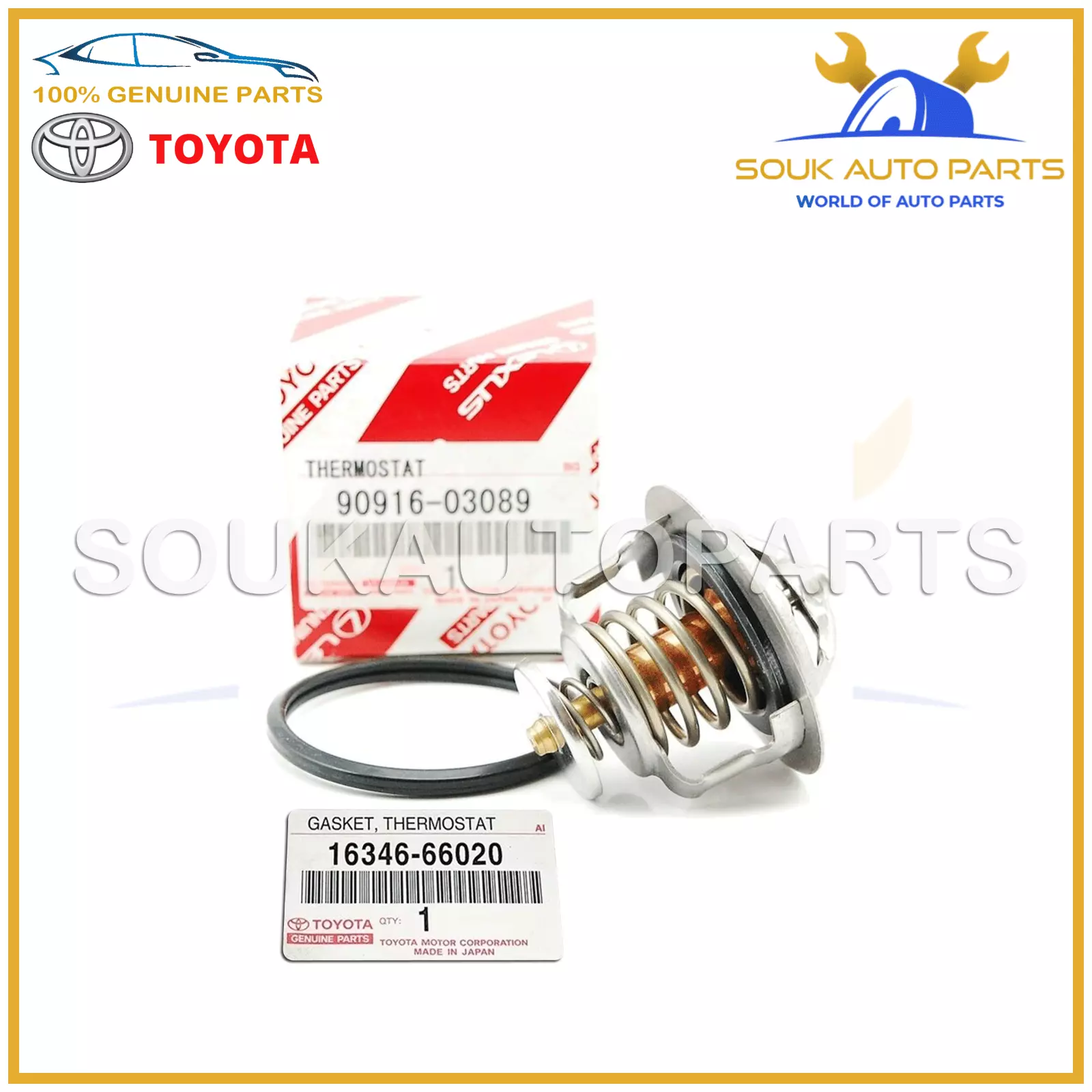 Tags: 90916-03089 16346-66020, 9091603089 1634666020, THERMOSTAT WITH GASKET, TOYOTA GENUINE