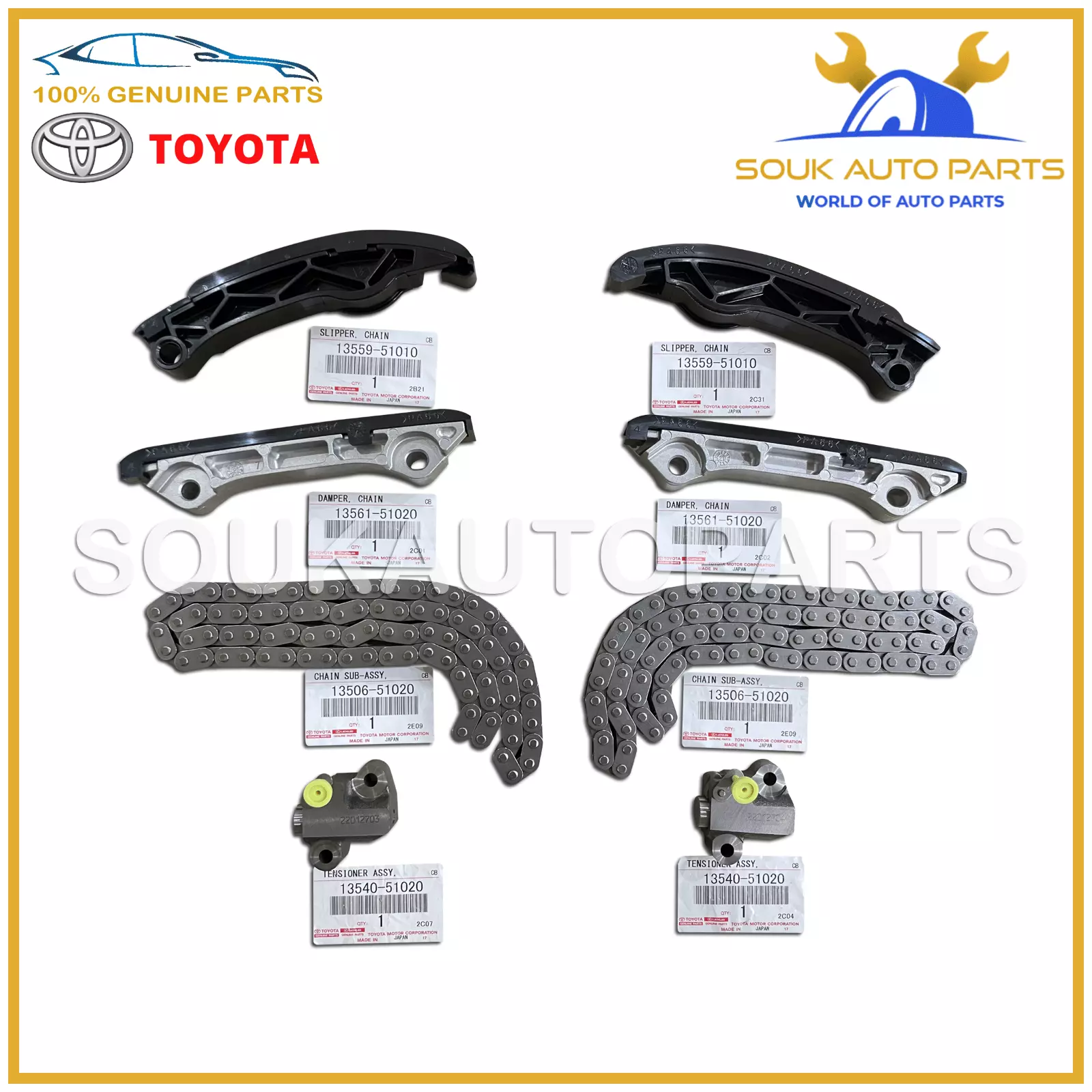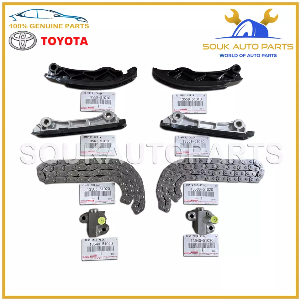 TIMING CHAIN x 2pc: 13506-51020, CHAIN GUIDE x 2: 13561-51020, CHAIN GUIDE x 2pc: 13559-51010, TENSIONER x 2pc: 13540-51020.
